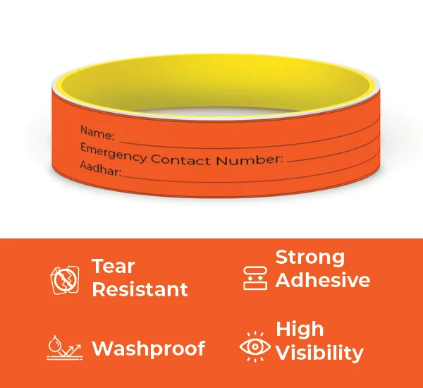- Each band shows name of the wearer, wearer's Aadhaar and emergency contact details